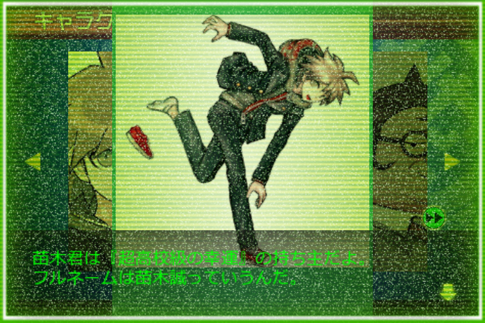 「今は、○月○日、○時○分、だよ!」 本当にカワイイです。 ずっとこの画面にしておきたいくらいです。 ♪アルターエゴのキャラクター百科! “キャラクター百科”では、アルターエゴなりにダンガンロンパの登場人物を紹介してくれます!